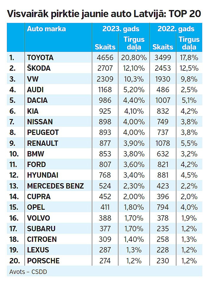 Gluži otrādi: viens jauns auto gadā uz katriem 65 iedzīvotājiem – tas ir ne tikai mazāk nekā Eiropā vidēji (45), bet nav daudz pārāks par Latvijas pieticīgo sniegumu (85).