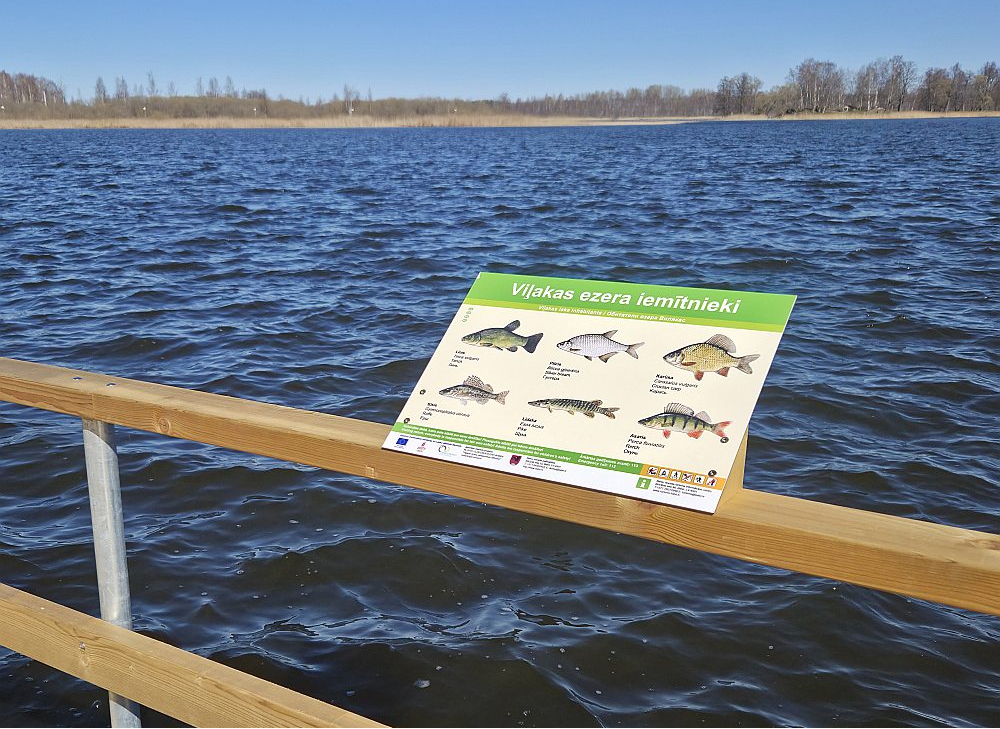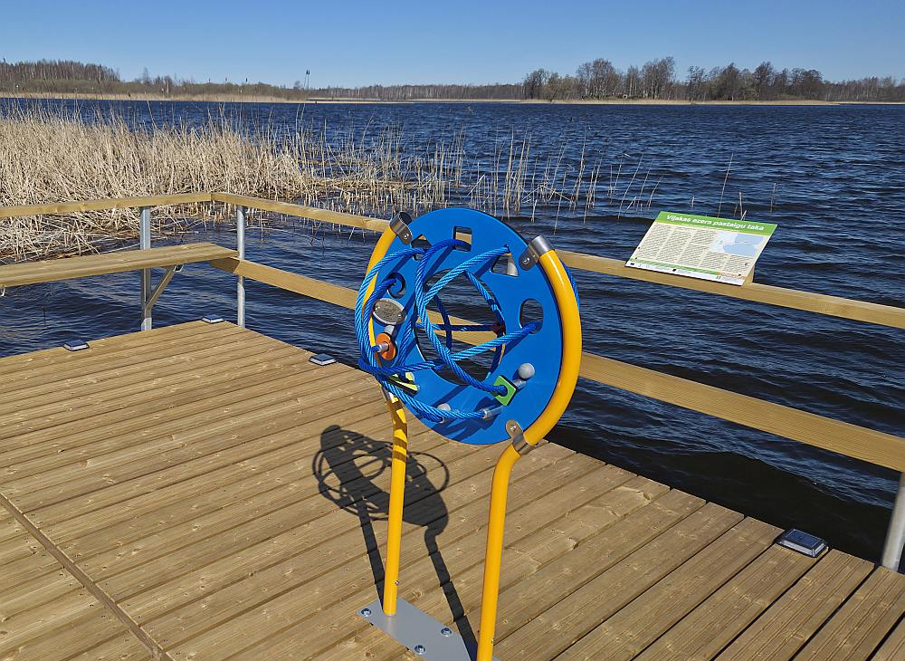 Viļakā ierodamies pie ezera peldvietā, kur priecīgi ņirb iespaidīgs vides objekts "Ūdens" ar 2652 metāla lāsītēm. Pludmalē ir futbola un volejbola laukums, zona bērniem, drīz tikšot izliktas bojas, lai braucēji ar ūdensmotocikliem netraucētu peldētājus. Pavisam nesen, marta sākumā, kad uz ezera vēl bija ledus, uzstādīts un svinīgi atklāts tā sauktais jaunais pontonu tilts – tagad kopā ar agrāk likto veco pontonu ceļu sanākot 2,1 kilometrs, rēķina Viļakas apvienības pārvaldes vadītājs Oļegs Kesks un apvienības saimniecības vadītāja Terēzija Babāne. Skaistā laikā cilvēki ne tikai atbraucot uz peldvietu, bet arī vēlas apskatīt salu. Tā kā līdz pontonu tiltam, kas kopš 2020. gada savieno ar salu, nācās sēsties mašīnā, lai piebrauktu tuvāk, jo ezers aizaudzis niedrēm, nolēmuši laipu pagarināt un veidot taisnāku piekļuvi – pa pontonu taku uzreiz no peldvietas. Jaunatklātā laipa ved starp niedrēm tuvu ezera krastam, naktīs ceļš aizvijas romantiskās gaismiņās, jo malās iebūvētas saules baterijas. Vairākās vietās laipa veidota plašāka – kā nelieli atpūtas stūrīši, kur ir gan soliņi, gan atraktīvas attīstošas spēles bērniem (ideja par tām aizgūta pieredzes braucienā Igaunijā). Tāpat izliktas informatīvas plāksnes ar ezera zivju un putnu attēliem. Tās tapušas sadarbībā ar tepat esošo kempingu "Ezertūre" – atpūtnieki interesējušies, kādas ezerā mīt zivis, kādi putni te ligzdo.