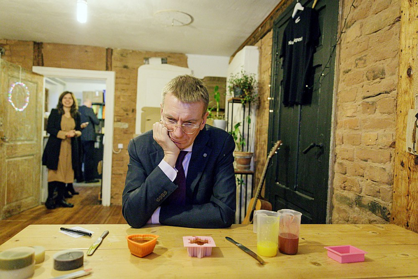 Jauns prezidents, jauns stils. “Es ļoti labi apzinos, ka no Valsts prezidenta sabiedrība sagaida vairāk, nekā Satversme juridiski paredz,” vēl pirms ievēlēšanas intervijā “Latvijas Avīzei” atzina Edgars Rinkēvičs. Tās nebija tikai standartfrāzes. Jau kopš pirmās dienas prezidenta amatā E. Rinkēvičs ir ļoti vērīgi centies tvert sabiedrības noskaņojumu, un tas atbalsojies arī viņa darbakārtībā, publiskajos paziņojumos un iniciatīvās. Viena no pazīmēm, kas viņu atšķir no priekšgājējiem – dzīvā komunikācija sociālajos tīklos, kur netrūkst asprātību un vārdu spēļu, piemēram, par reģionālās vizītes laikā “savārītajām ziepēm”. Attēlā: Valsts prezidents E. Rinkēvičs apmeklē kosmētikas mājražotāju SIA “Silmachy remedies”.