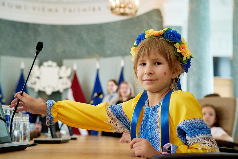 Ukrainai jāuzvar! 24. februārī apritēja gads, kopš Krievija sāka pilna apmēra uzbrukumu Ukrainai, bet okupanti nav atteikušies no saviem neģēlīgajiem nodomiem un karš turpinās. Tāpēc turpinājās arī Latvijas palīdzība un atbalsts Ukrainai. Attēlā: Ukrainas bērni viesojas Latvijas valdības ēkā šā gada septembrī.