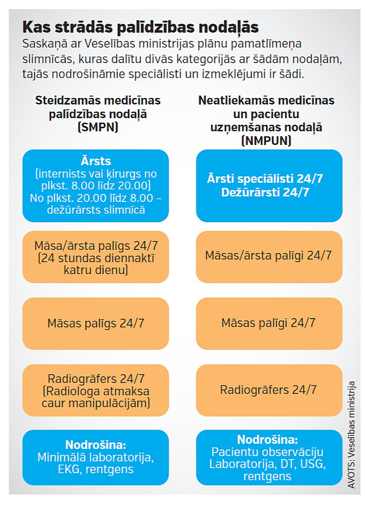 Neraugoties uz to, ministrija savu informatīvo ziņojumu valdībai vēlas iesniegt jau šomēnes, lai tas tiktu pieņemts līdz gada beigām un jau līdz 2026. gada 1. jūnijam varētu pārskatīt stacionāro ārstniecības iestāžu dalījumu līmeņos un tajos nodrošināmos medicīnas pakalpojumus. Bet līdz 2029. gadam ministrija apņēmusies, plānojot finansējumu slimnīcām, vērtēt arī veselības aprūpes pakalpojumu kvalitāti, lai mērķtiecīgi stiprinātu tās ārstniecības iestādes, kas darbojas efektīvāk, nevis vienādi uzturētu visas slimnīcas neatkarīgi no rezultātiem.