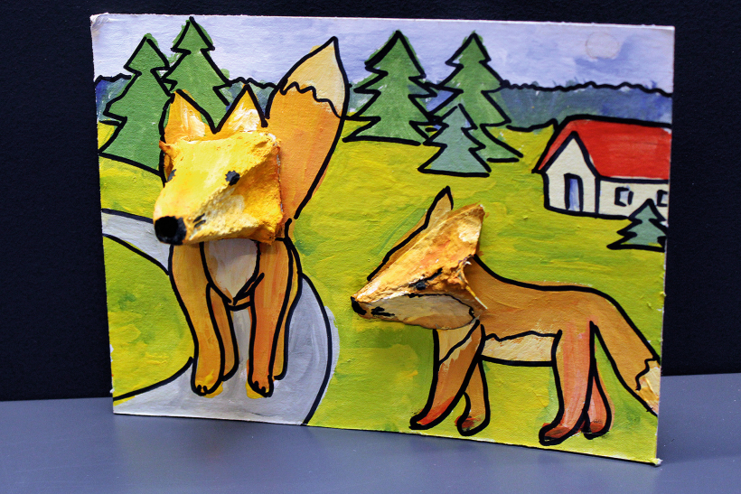 - Izdomā, kāds 3 D darbs varētu tapt no olu paliktņa uz papīra, šeit – lapsa un lapsas deguns.