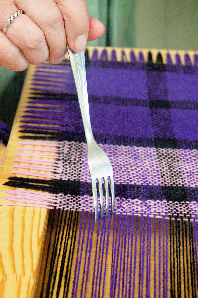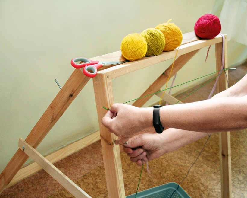 10. Pēc katras pavediena kārtas diegs rūpīgi jāpieblīvē pie jau ieaustajiem.