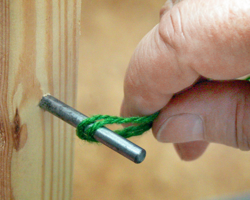 6. Tad ņem lielo koka adatu un ver vienu pavedienu.