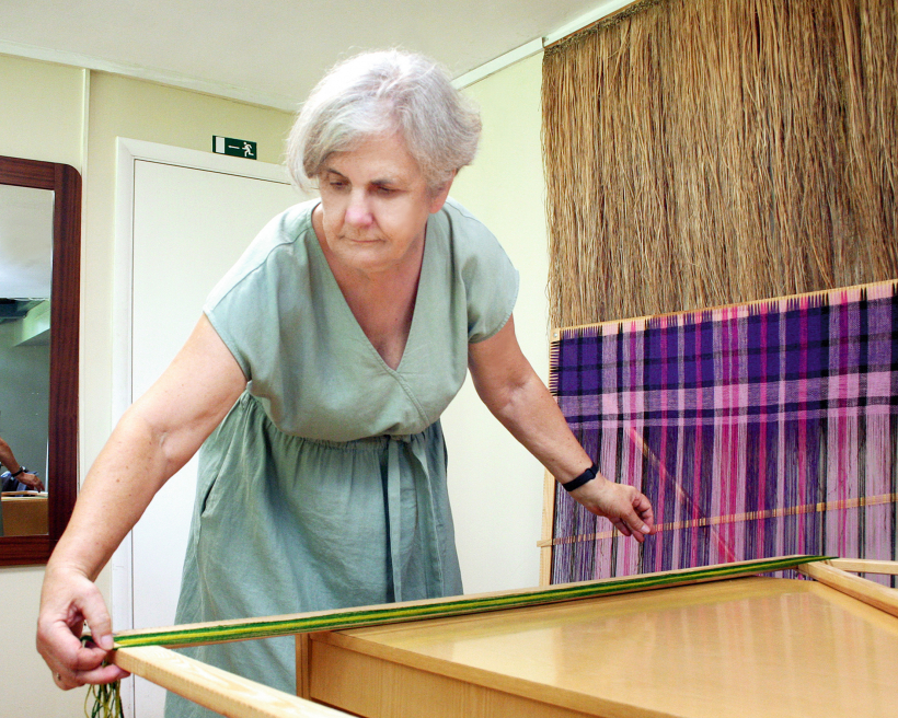 Pie Vilces lietišķās mākslas studijas “Vilcenes” dalībniecēm devāmies vasaras sākumā. Viņas kā vairākums rokdarbnieku pieprot dažādus rokdarbu veidus, bet galvenais aicinājums ir aušana. Un, kad vēl norisa gatavošanās Dziesmu un deju svētkiem, viņas projekta ietvaros uz rāmja bija noaudušas krāšņus lakatus, pateicoties meistara Mārtiņa Vīpuļa izgatavotajiem aušanas rāmjiem un palīgierīcei pavedienu mērīšanai. Studijas vadītāja Sarmīte Vīpule stāsta, ka aušanai izmanto “Limbažu tīnes” divkārtīgo vilnas dziju un pārsvarā auž lakatus vienkārtnī.