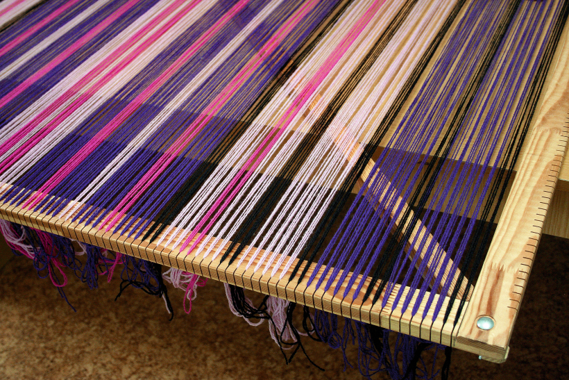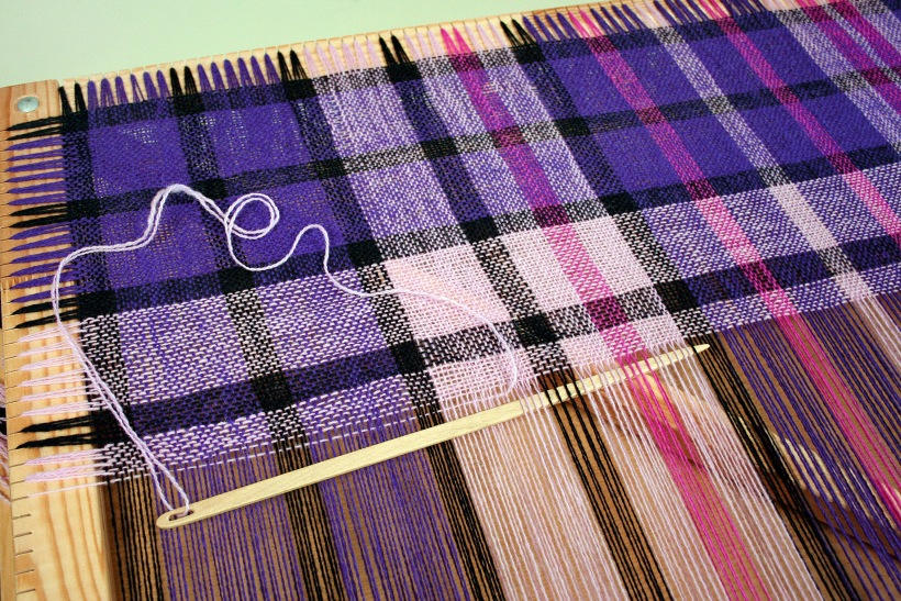 11. Taču jāraugās, lai vertikālās un horizontālās līnijas ir taisnas. Katra audu kārta ir pabeigta, kad gropītē ielasīti četri pavedieni.
