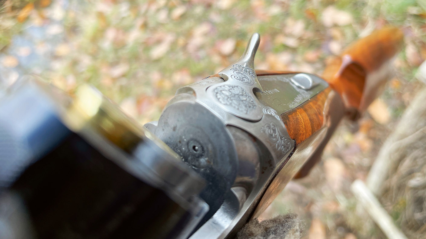 Ar ko tad šī karabīne funkcionalitātes ziņā atšķiras no tā, ko lietoju ikdienā? Pirmkārt jau tā ir atvāžamā karabīne, kurā var ielādēt divas patronas. Kāds varētu teikt, ka tas ir ļoti ierobežojoši, ja nāk baigais mežacūku bars. Savā ziņā – jā, bet, ja ar šādu ieroci stāvi uz stigas, šaura ceļa un šaušanas leņķis nav liels, tad principā var veikt divus ātrus šāvienus bez pārlādēšanas, aizslēga vilkšanas. Šāviens, tēmēklis un mērķis, un otrs šāviens. Ierocim ir viena sprūda mēlīte, kas to padara ērti lietojamu.