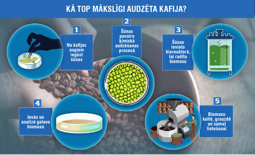 Var piebilst, ka tā vairāk pazīstama lopkopībā: jau tagad daudzviet pasaulē restorānos var pasūtīt šādā mākslīgā ceļā kultivētu steiku vai jūras produktus. Pētnieku grupas vadītājs profesors Heiko Rišers teicis, ka kafijas izaudzēšanas gadījumā viņi dzīvnieku šūnas vienkārši nomainījuši ar augu šūnām. Proti, auga šūnas ievieto bioreaktorā ar barojošo šķīdumu, un tur tās sāka atražošanas procesu. Izaudzēto biomasu izkaltē, uzgrauzdē, un tā ātri pārvēršas kafijas pulverī.