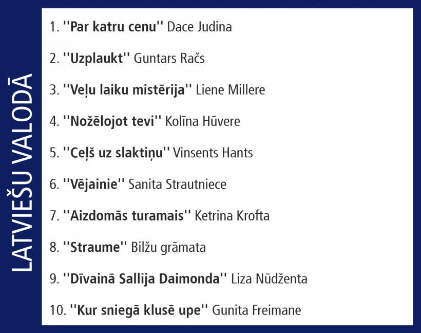 Grāmatnīcu tīkls "Globuss" apkopojis pagājušās nedēļas pirktākās grāmatas.