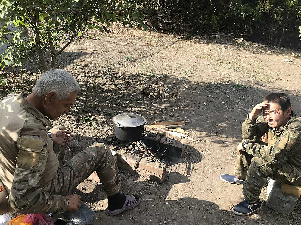 Vēl pirms tam dienā esmu devies pie bataljona 8. rotas karavīriem, kas izvietojušies citā ciemā. Tur dzīvo automašīnu vadītāji un nedaudz karavīru, kas atgriezušies no pozīcijām atpūsties. Uzzinu, ka pie viņiem atrodas arī divi "ciemiņi" – krievu gūstekņi. Izved abus divus. Vēlāk man pastāsta, ka drošības dienests ar viņiem tā stiprāk "pastrādājis" un tādēļ abi izklāstījuši patiesību par sevi. Pagātnē, kā jau daudzi uz karu nosūtītie krievi, viņi bijuši notiesāti. Viens – par slepkavību, taču man viņš par to nestāsta. Tēlo pavisam vienkāršu un vientiesīgu cilvēku. Abi divi cenšas radīt iespaidu, ka nekad neko nav zinājuši par nopietnākām lietām. Tas nav pārsteigums, lielākā daļa padevušos krievu stāsta, ka gluži vienkārši vēlējušies tikai labi nopelnīt, bet par karu, tā šausmām un ukraiņu civiliedzīvotāju slepkavošanu neko neesot zinājuši. Viens no viņiem man stāsta, ka karot neesot grasījies. Sākumā četrus mēnešus dienējis komandantūrā Mariupolē, tad nosūtīts uz fronti. Vaicāju abiem, kas ar viņiem notiks, ja tiks apmainīti pret ukraiņiem. Saku – jūs atkal nosūtīs atpakaļ uz fronti karot pret ukraiņiem. Nē, nē, es to nedarīšu, viņš kategoriski apgalvo. Otrs, pagātnē par slepkavību tiesātais gūsteknis, ir bijis ievērojami nopietnāks karotājs, esot divas reizes uz trim mēnešiem parakstījis līgumu ar specvienību "Ahmat". Šo informāciju no viņa ieguvuši Ukrainas drošības dienesta vīri. Kāds kareivis man pastāsta, ka informācija par abiem gūstekņiem netikšot publiskota.