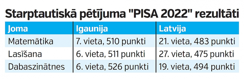 Pērn decembrī tika publiskoti pēdējie skolēnu sasniegumu starptautiskā salīdzinājuma "PISA2022" dati, kas parāda, ka Igaunijas piecpadsmitgadīgie skolēni ir krietni zinošāki par saviem Latvijas vienaudžiem gan matemātikā, gan dabaszinātnēs, gan arī lasītprasmē.