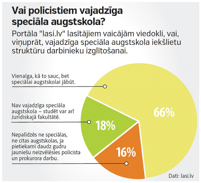 Mēs gan tur salasām maz gribētājus – šajā mācību gadā ir tikai 12. Arī pieprasījums pēc šādiem speciālistiem nav liels. Visur tur, kur policijā ir par kaut ko jālemj, ar laiku būs tikai policisti ar augstāko izglītību. Tas ir ceļš uz kvalitāti. Sabiedrība pieprasa kvalitatīvu un kompetentu policistu. To var panākt tikai ar izglītību. Ir arī trīs mēnešu gara profesionālās pilnveides ievirzes programma cilvēkiem ar augstāko izglītību. Dažas profesijas var būt piekritīgas pēc būtības, piemēram, augstākā izglītība tiesību zinātnēs der 99% policijas darbiniekiem, veterinārārsta – policijas kinologam, sabiedrisko attiecību – policijas prevencijas darbiniekam. Trijos mēnešos šādi cilvēki apgūst policijas dienesta pamatus un var sākt strādāt, papildus vēl mācoties Izglītības un mācību centra kursos," teic D. Homenko.