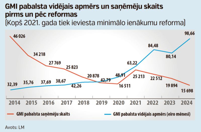 Lai arī kopš 2021. gadā uzsāktās minimālo ienākumu reformas garantētā minimālā ienākuma (GMI) pabalsts ik gadu pastāvīgi kāpj, Eiropas Pretnabadzības tīkla nacionālajā dalīborganizācijā "EAPN-Latvia" vērtē, ka tas joprojām ir nepietiekams. Bet Labklājības ministrijā (LM) rēķina, ka augošie minimālie ienākumi kompensē patēriņa cenu kāpumu.