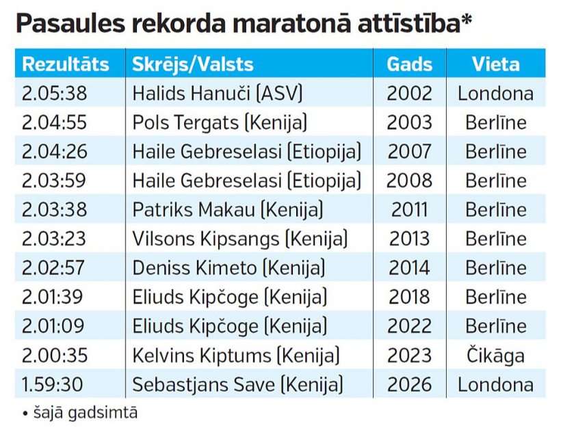 Savulaik Rīgā startējušais Kenijas gargabalnieks Sebastjans Kimaru Save svētdien Londonā kļuva par pirmo cilvēku pasaulē, kurš maratona distanci jeb 42,195 kilometrus veicis ātrāk par divām stundām.