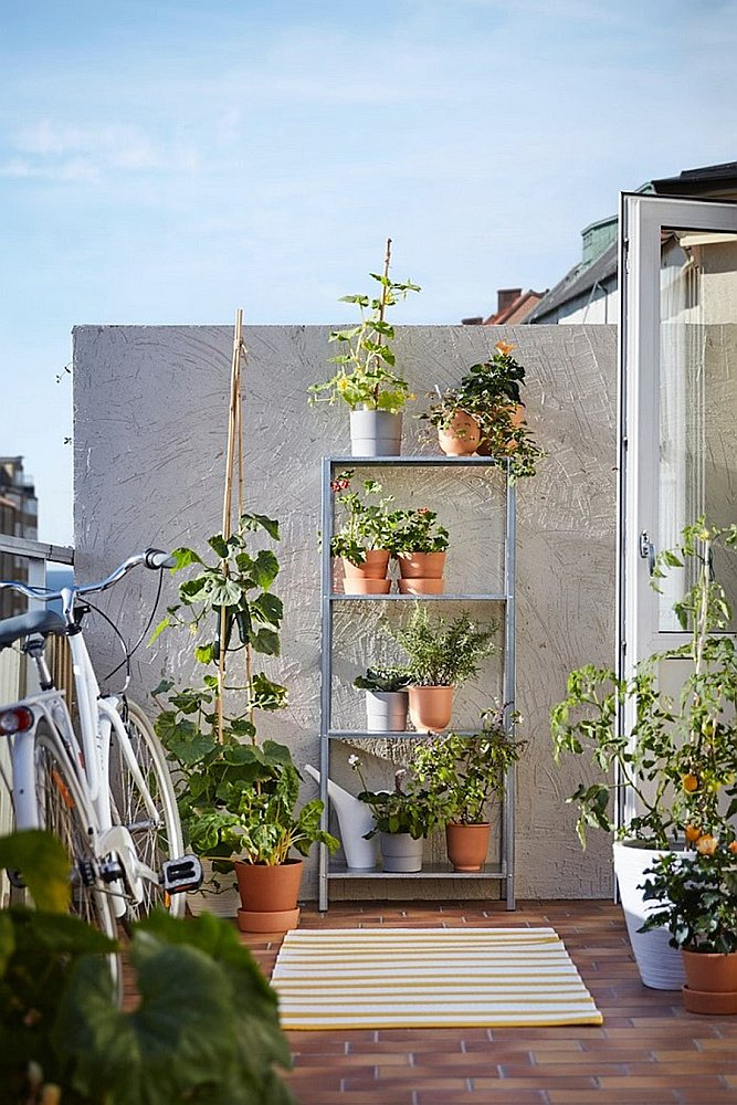 Balkona iekārtojumā vienmēr modē ir augi. Lai cik zaļa ainava aiz balkona margām, nekas tā nerotā āra telpu kā augi. Balkoniem un terasēm šim nolūkam pārsvarā izmanto košus, bagātīgi ziedošus augus – viengadīgās puķes un garšaugus puķupodos, balkona kastēs, toveros un konteineros.