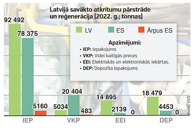 Latvijai ar atsevišķu produktu izņēmumiem atkritumu dalītajā vākšanā ir diezgan labs sniegums.