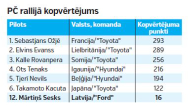 Divreiz pārsista riepa un mašīnas motora tehniskās problēmas pārvilka treknu svītru Mārtiņa Seska un Renāra Franča izredzēm kļūt par pirmajiem latviešiem, kuri pasaules čempionātā rallijā (WRC) prestižākajā klasē kāpuši uz goda pjedestāla kādā no posmiem.