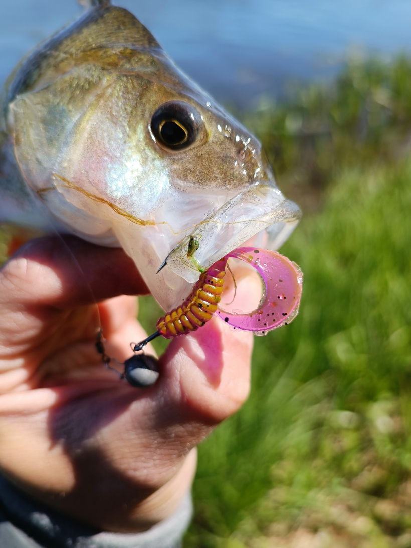 Šad tad piedalos kādos sētas mačos, tieši tādos, kur ieskaita tikai asarus, tad es izmantoju arī nimfas, māneklim ātri pienāk beigas, taču sacensībās jāiet uz pilnu banku. Svarīgi izmantot pēc iespējas vieglāku džiga galvu, lai māneklis lēnāk grimtu. Iesaku pirkt galvas, kurām nav resna tā vieta, kur silikons spraužas virsū galvas rajonā, nelielus mānekļus tas ātri saplēš un gumija gandrīz vienmēr slīd nost, tā vietā ir dažādas alternatīvas – atskabarga, maza spirāle vai jebkas cits, kas neplēš mānekli.