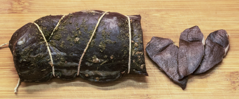 Gaļu izņem no iesaiņojuma un notin ar kokvilnas auklu, iekarina caurvējā uz trim četrām nedēļām vītināties. Jārūpējas, lai gaļai nepiekļūtu peles un mušas. Vislabāk gaļu pasargāt, izgatavojot vītināmo kasti, kurai divas sienas izveidotas no smalka metāla sieta. Ēd kā uzkodu, cienā viesus.