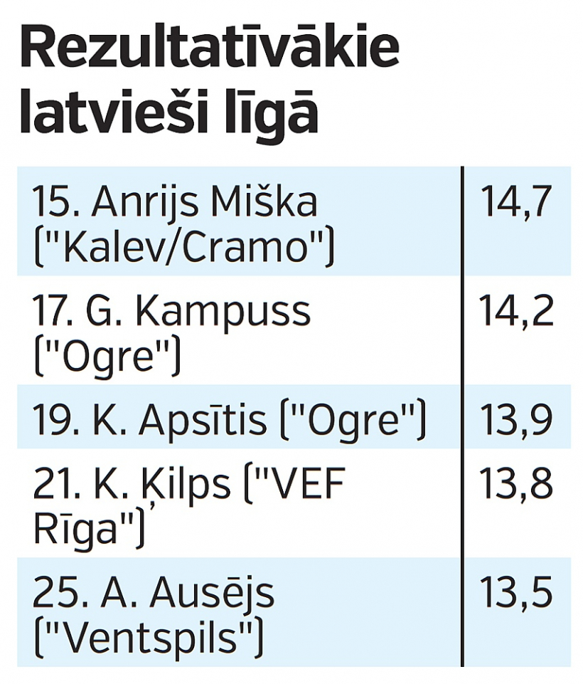 No ceturtdaļfināla dueļiem vēl jāizceļ Rīgas "Zeļļu" tikšanās ar Tallinas "Kalev/Cramo", ko pārstāv Anrijs Miška. Viņš savainojuma dēļ gan mēnesi nav spēlējis, bet pirms tam bija ļoti produktīvs un tika atzīts par janvāra līgas vērtīgāko spēlētāju. Miška šosezon kļuva par rezultatīvāko no latviešiem ar vidēji spēlē gūtiem 14,7 punktiem. Kopējā tabulā gan tā bija tikai vieta otrā desmita vidū, augstāk esot 14 ārvalstu basketbolistiem.